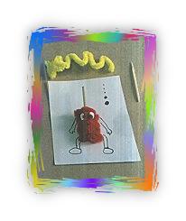 黏上牙簽和眼睛即可, 或可用線把綠色紙巾條串起成藤條代替絨條.