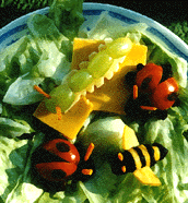把沙律混和生菜和雜果,再把小蟲舖在沙律面如上圖示。